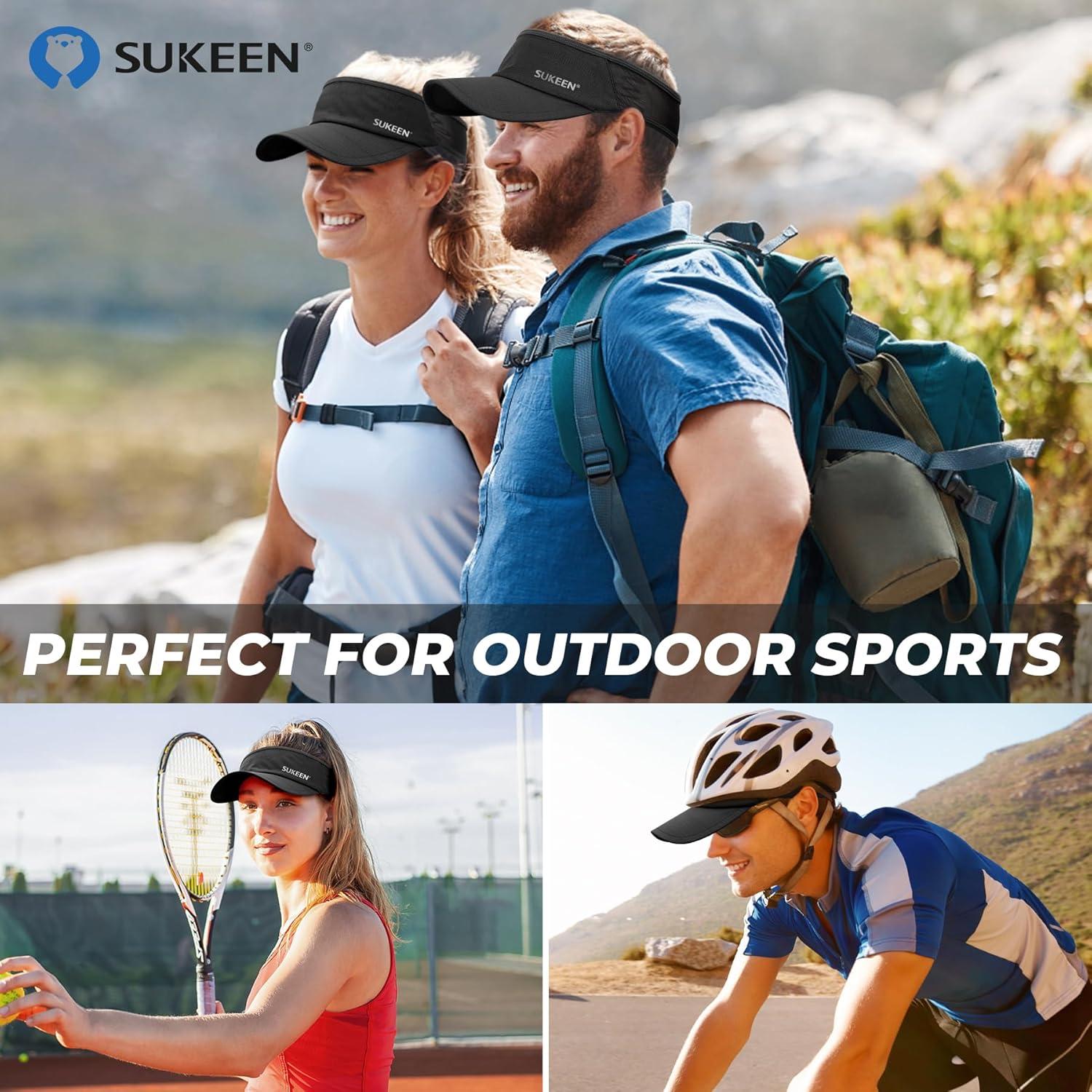 Get up to 70% off on Sukeen 2 Pack Sports Sun Visor Men Women Lightweight Packable Cooling Stretchy Visor Hat for Running, Tennis, Golf(2 Black) styles during our end-of-season clearance event.