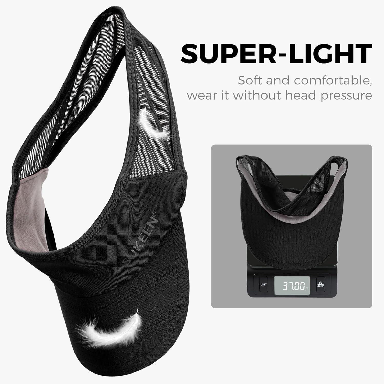 Sukeen 2 Pack Sports Sun Visor Women Men Lightweight Packable Stretchy Visor Hat for Golf, Tennis, Running, Daily Wear(Black/White)