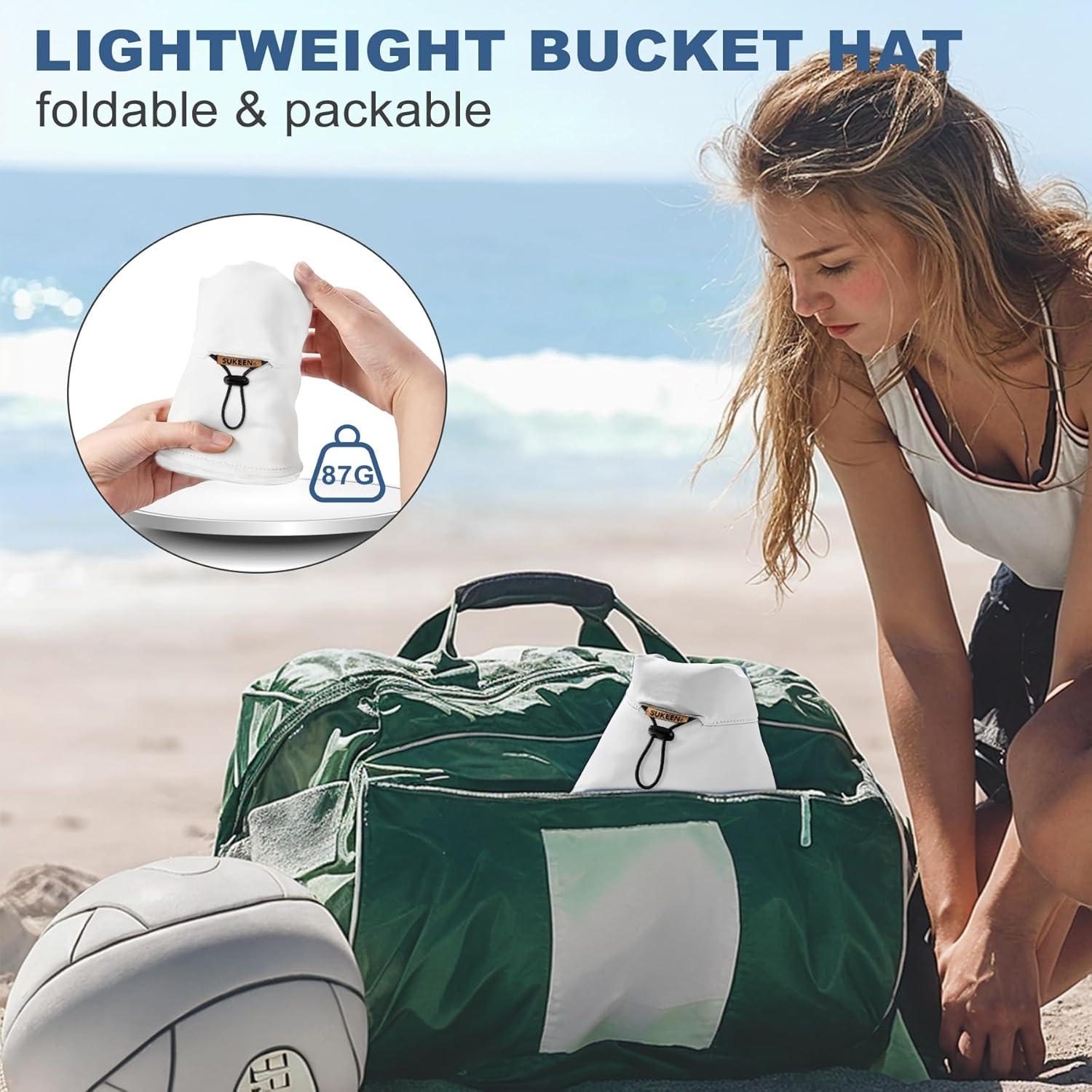 Sukeen Bucket Hat for Women Men Summer Beach Sun Hat Reversible Packable Adjustable UPF50+ Cooling Hat for Hiking Fishing(White)