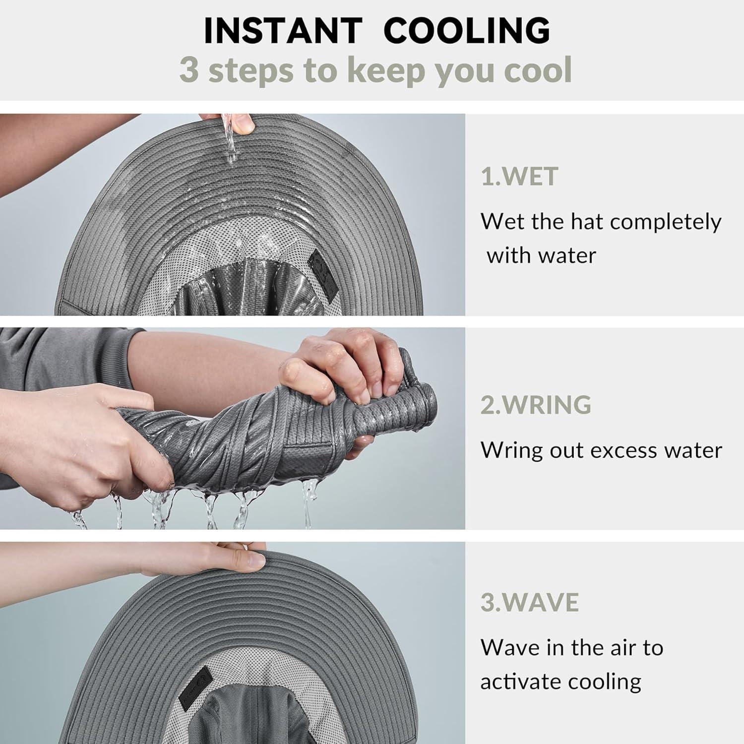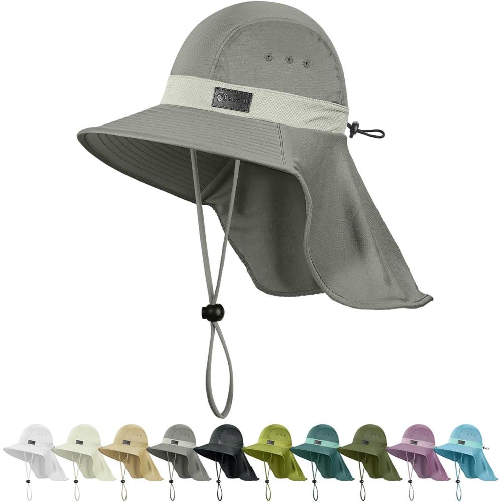 Sukeen Cooling Sun Hat for Men Women UPF50+ Wide Brim Fishing Hat with Neck Flap Adjustable Foldable Bucket Hat for Hiking(Grey)