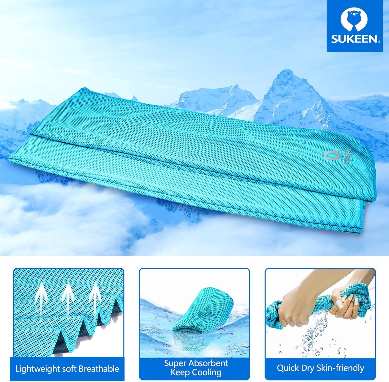 COMFORTABLE & SKIN FRIENDLY: Sukeen cooling towels are made of high-density cooling mesh microfiber, which is silky soft, pliable and comfortable.These towels can absorb water & sweat, also let you stay dry when high intensity of exercise, achieve UPF 50 SPF.