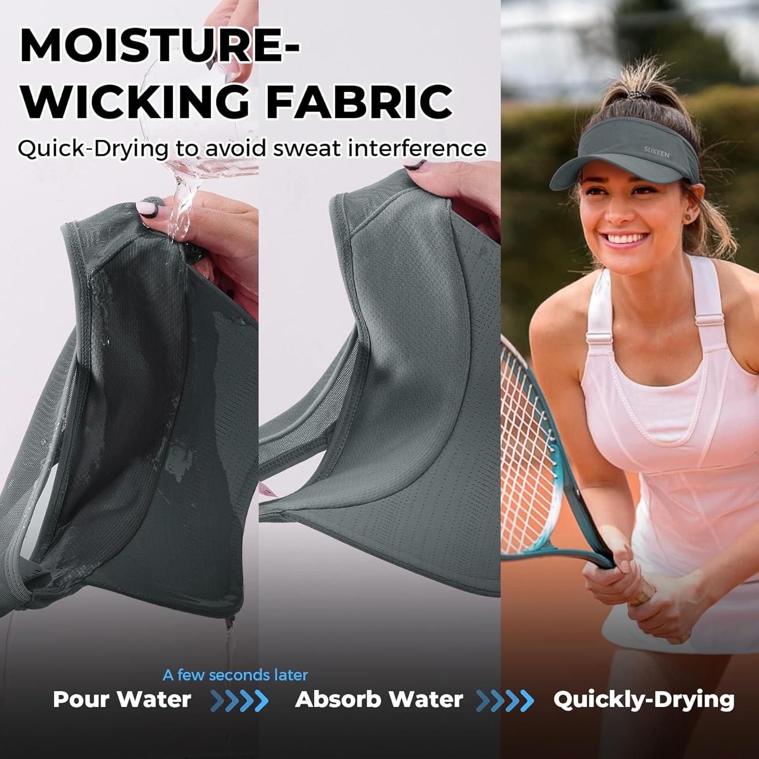 STRETCH FIT & BREATHABLE: Designed with a stretchy fabric band, the Sukeen Sports Sun Visor offers a comfortable and secure fit, with a head circumference range of 20.5-23.6in (52-60cm). The mesh design of the fabric band promotes breathability, allowing for better airflow and ventilation.