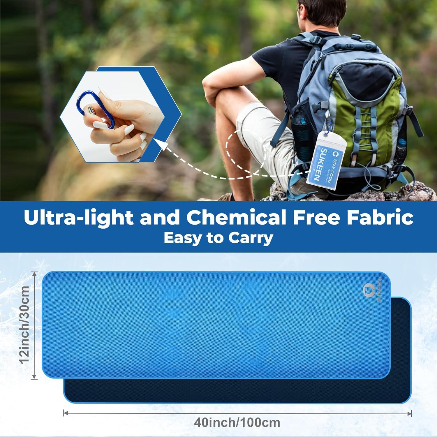 THREE-LAYER DESIGN, PERSISTENT COOLING: Sukeen outdoor sports cooling towel adopts a three-layer design, with the outer layer regulating evaporation to remove heat from the body surface, the middle layer effectively circulating water molecules and the deep layer quickly absorbing sweat from the body surface. This allows you to feel instantly cool, and the towel can stay cool for up to 5 hours when refrigerated (depending on the situation).