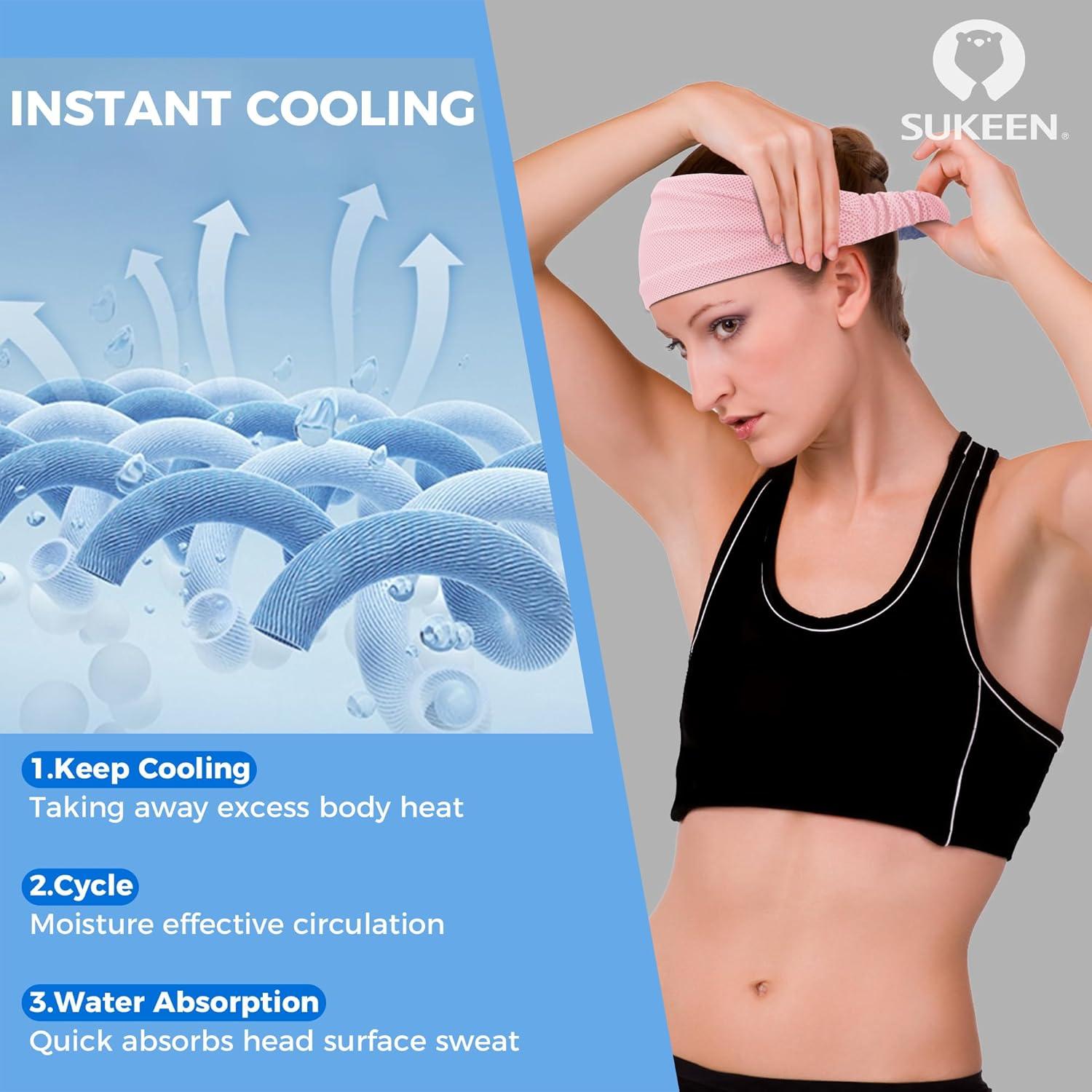 Instant Cooling: Sukeen cooling headbands for women is made of 55% nylon and 45% polyester, soft and breathable, its cooling fabric can quickly activate the cooling effect, just wet the sweat band with water and snap it with few times, then wear the headband to keep your forehead cool