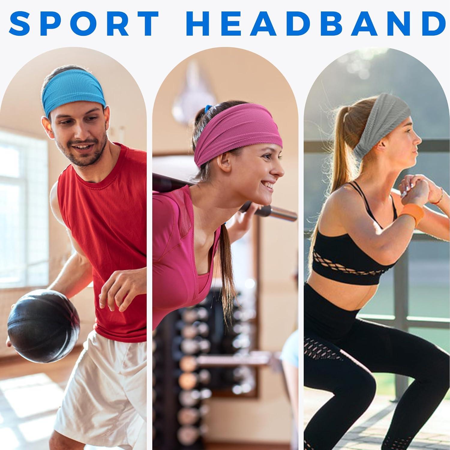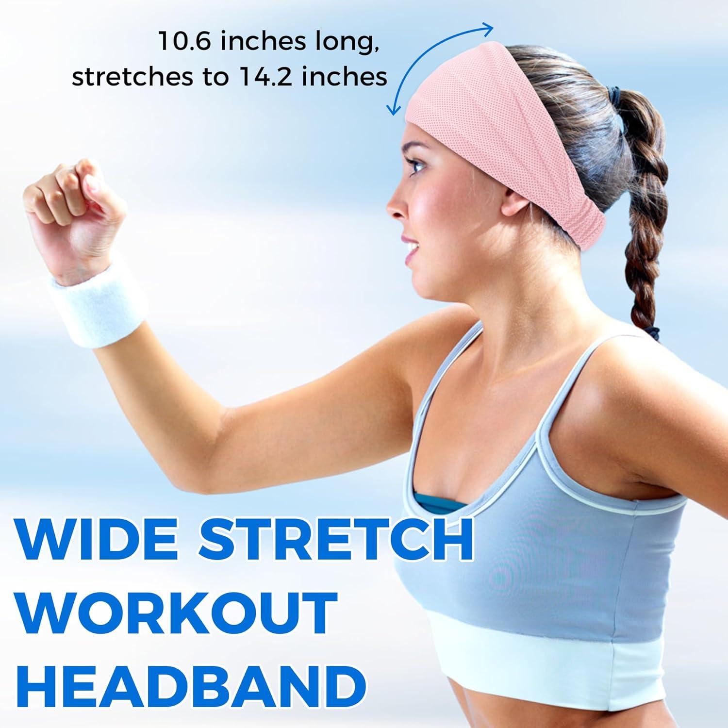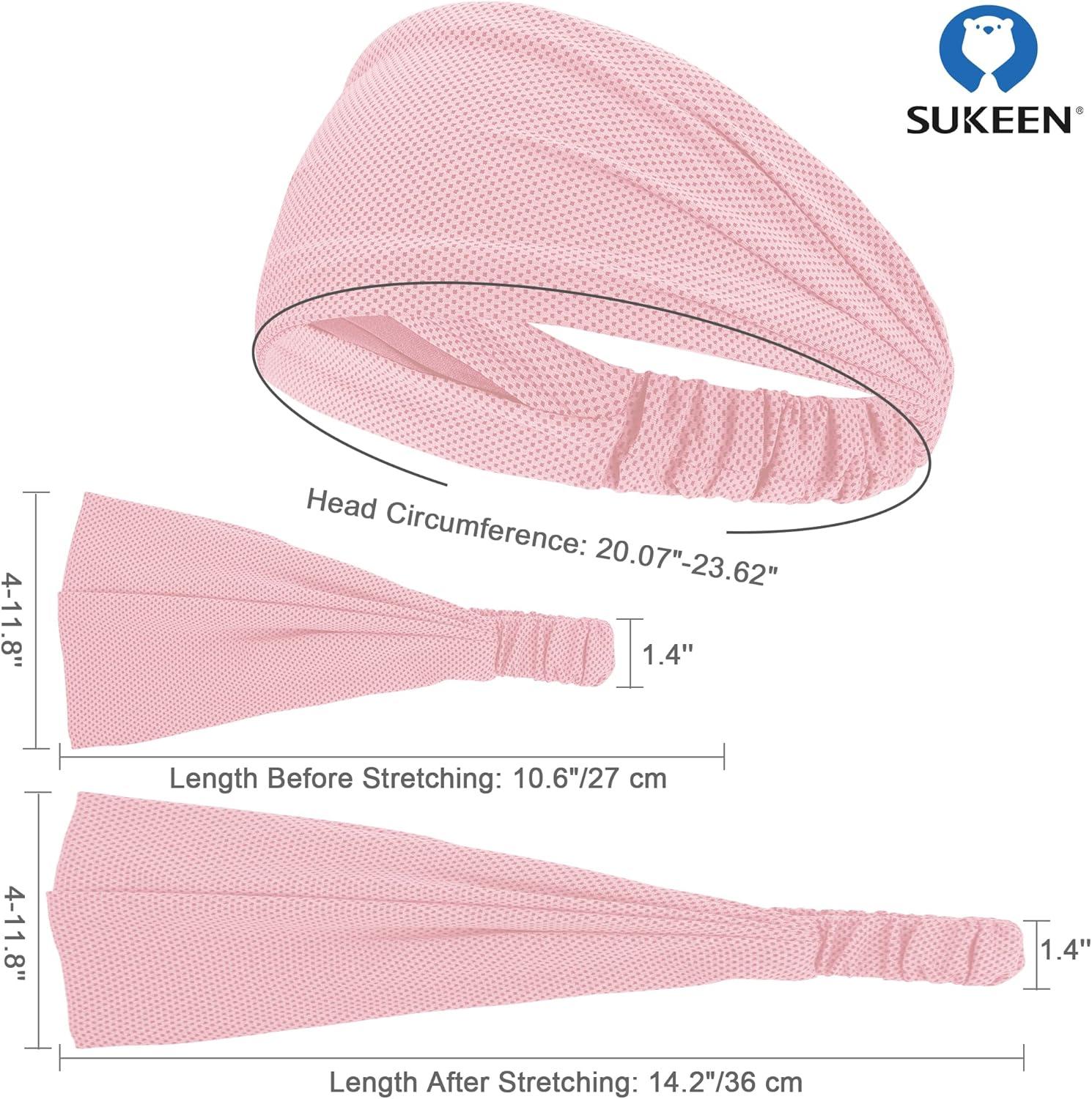 Sukeen Cooling Workout Headbands Women Men, Wide Stretchy Non-Slip Moisture Wicking Hairband, Sports Running Sweat Bands(Black/Blue/Rose Pink/Grey)