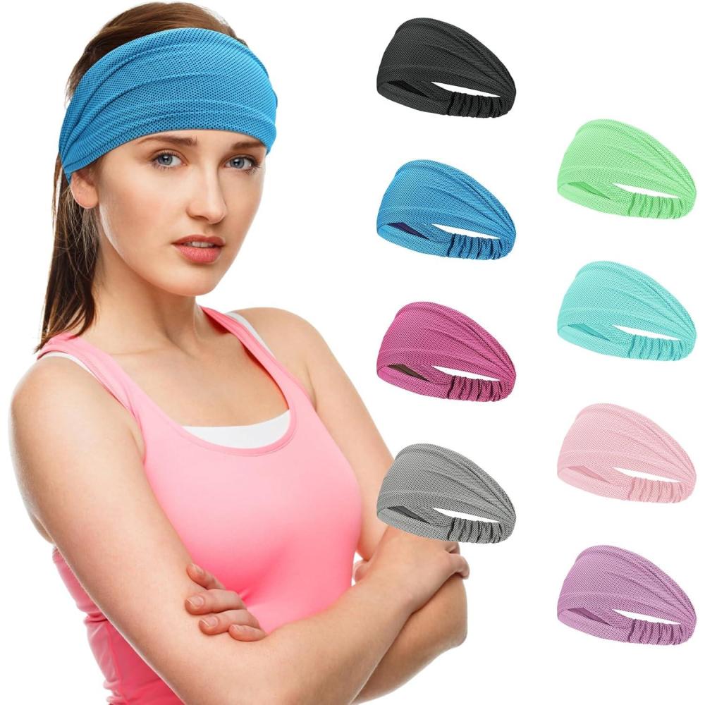 Sukeen Cooling Workout Headbands Women Men, Wide Stretchy Non-Slip Moisture Wicking Hairband, Sports Running Sweat Bands(Blue/Rose Red/Dark Gray/Macaron Mint Green/Macaron Pink/Lilac)