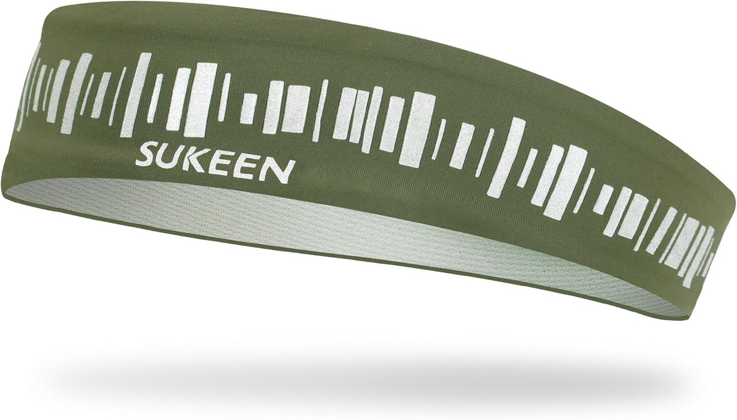 Sukeen Headbands for Men, Sweatbands Running Headbands, Moisture Wicking Mens Headband, Reflective Sports Headband, Non Slip Cooling Headband for Gym, Fitness, Exercise(a Dark Green)