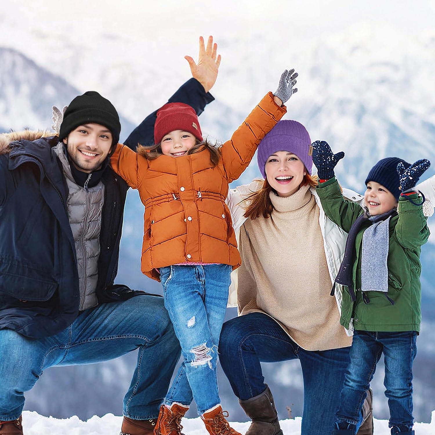 Sukeen Kids Beanie Hat for Girls Boys Seepage Proof Warm Skull Cap Soft Cold Weather Hat Ages 4-12 for Daily Outdoor(Black)