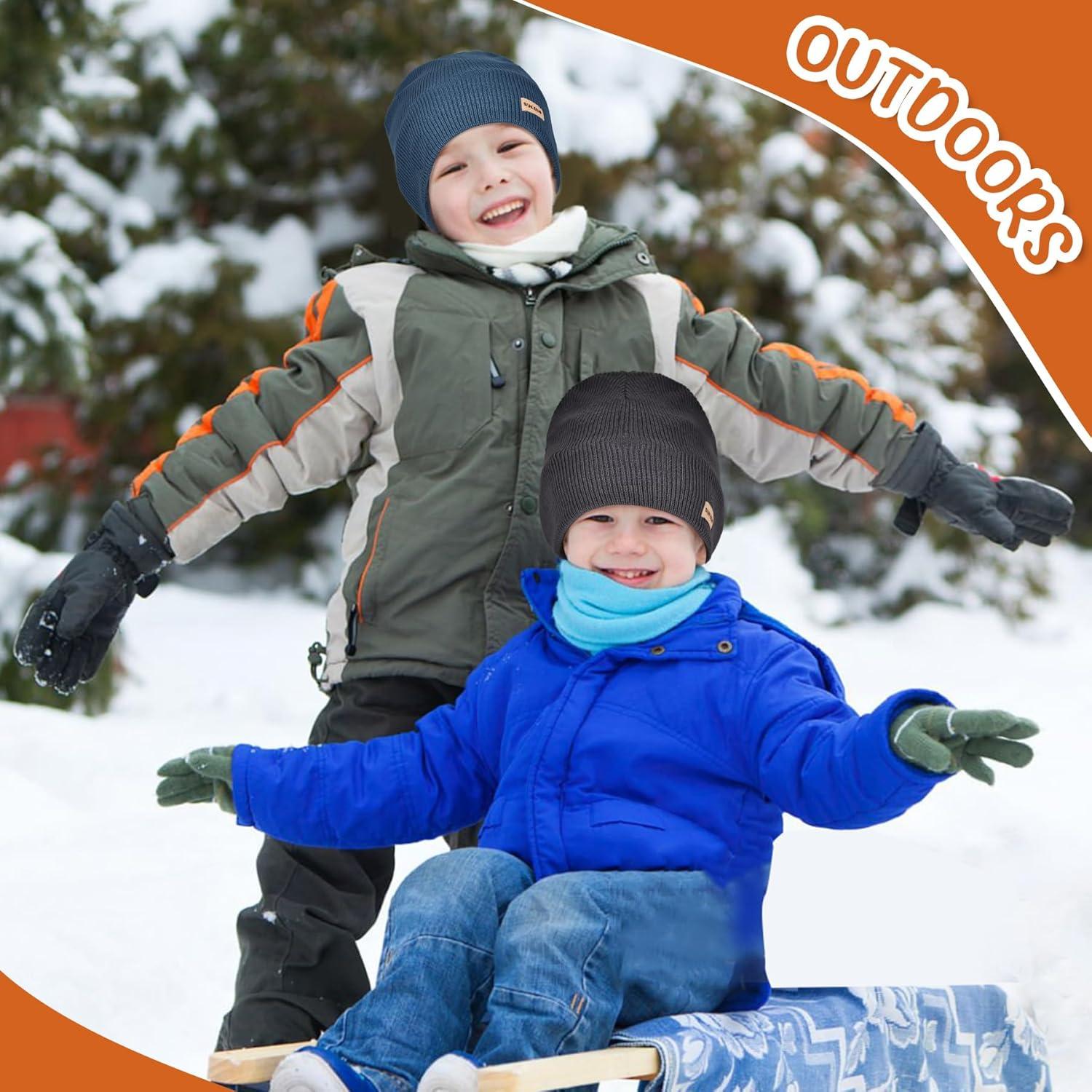 Sukeen Kids Beanie Hat for Girls Boys Seepage Proof Warm Skull Cap Soft Cold Weather Hat Ages 4-12 for Daily Outdoor(Grey)