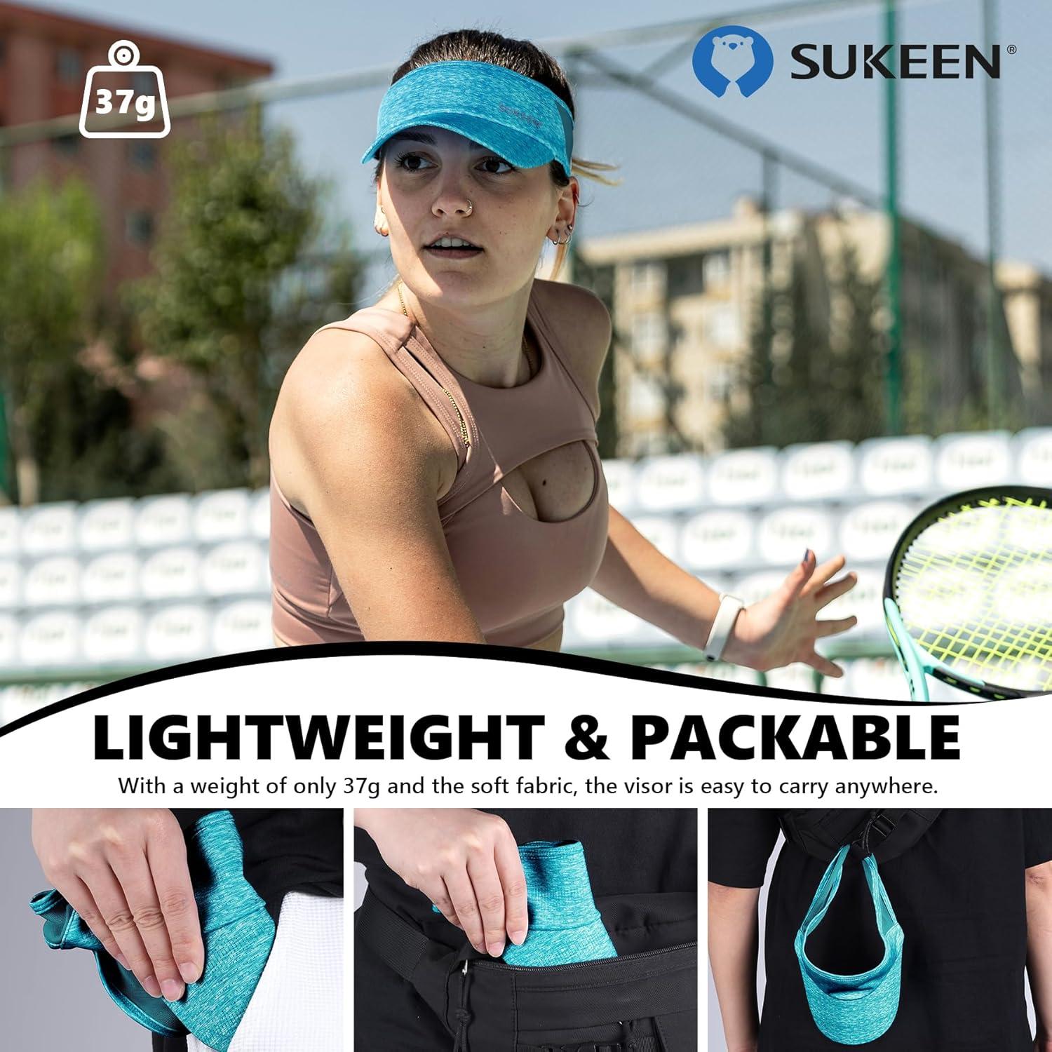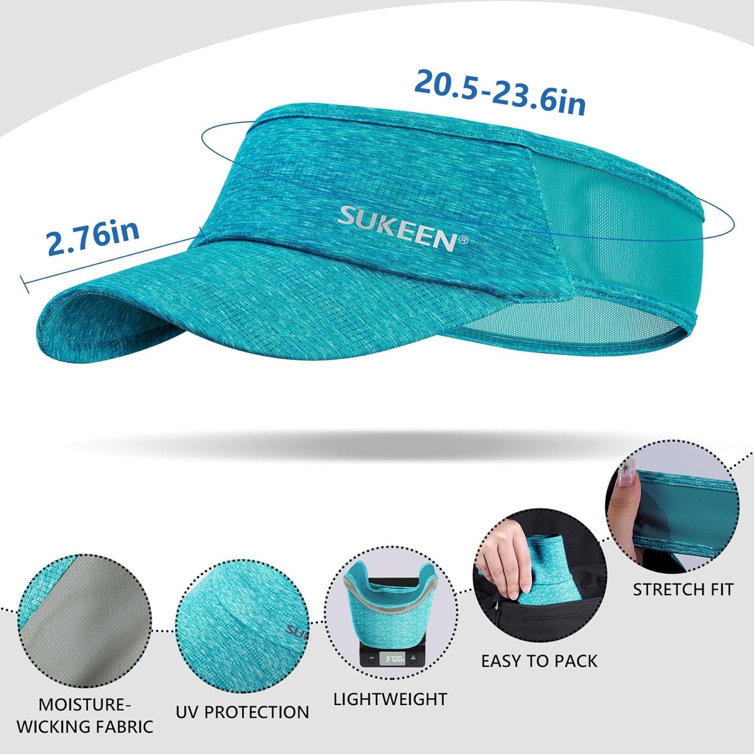 Sukeen Sports Sun Visor Men Women Lightweight Portable Cooling Stretchy Visor Hat for Running, Golf, Daily Wear(Teal Blue)