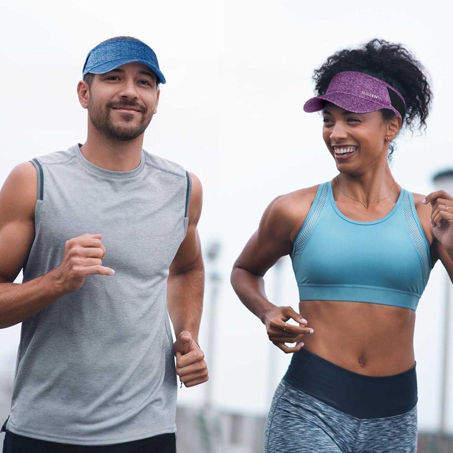 imageSukeen Sports Sun Visor Men Women Lightweight Portable Cooling Stretchy Visor Hat for Running Golf Daily WearPurple