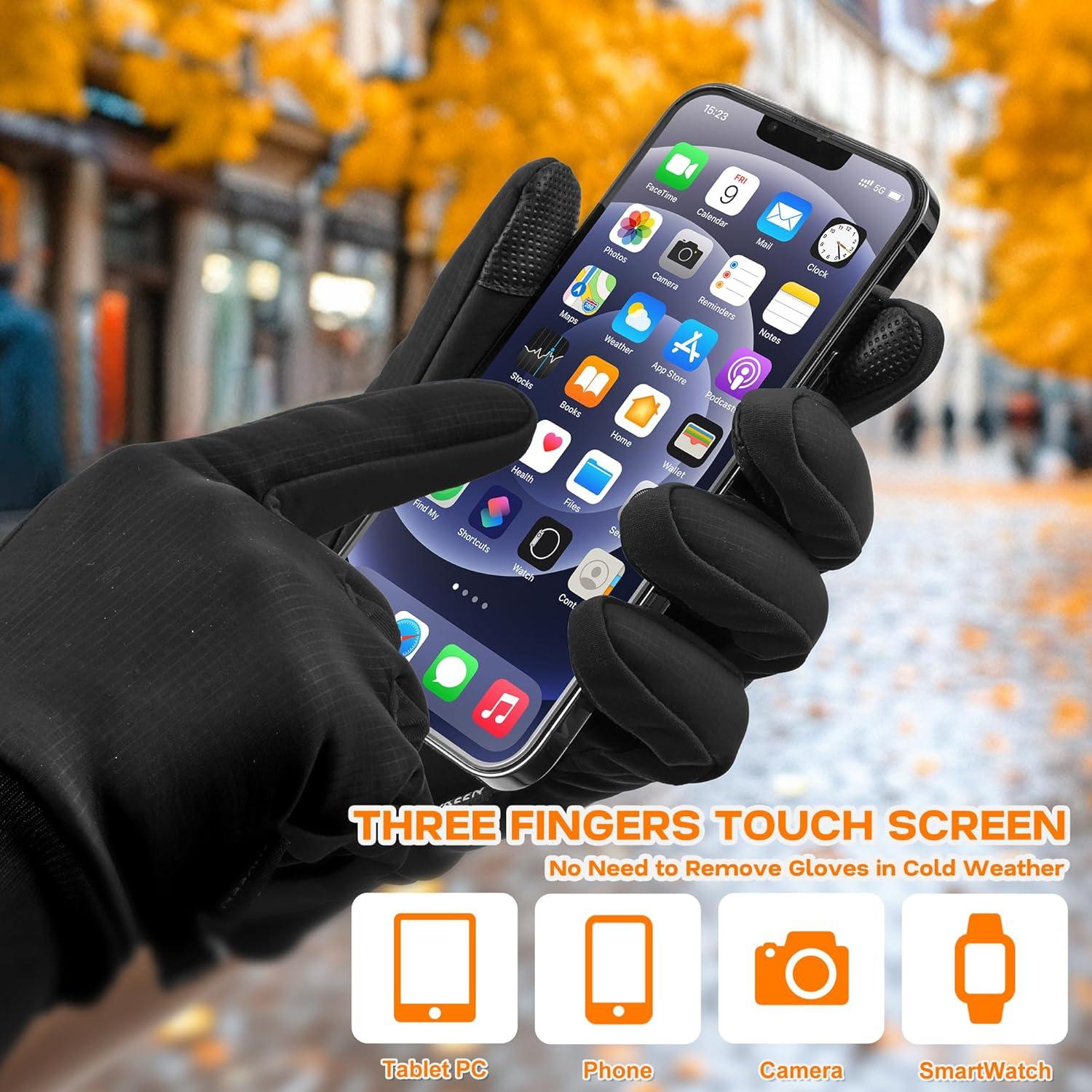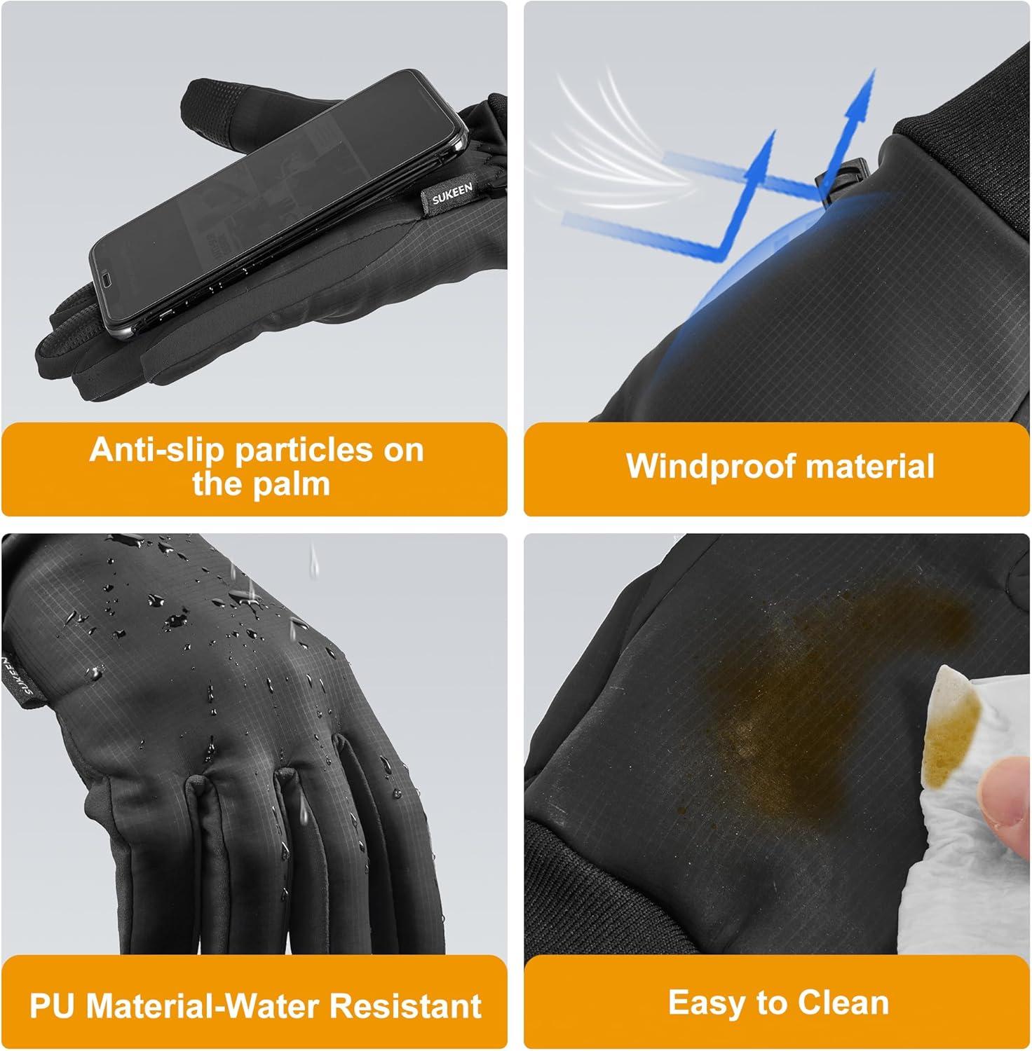 Sukeen Winter Gloves for Men Women, Waterproof Anti-Slip Touchscreen Warm Gloves for Runing Cycling Hiking Outdoor Recreation(Black)