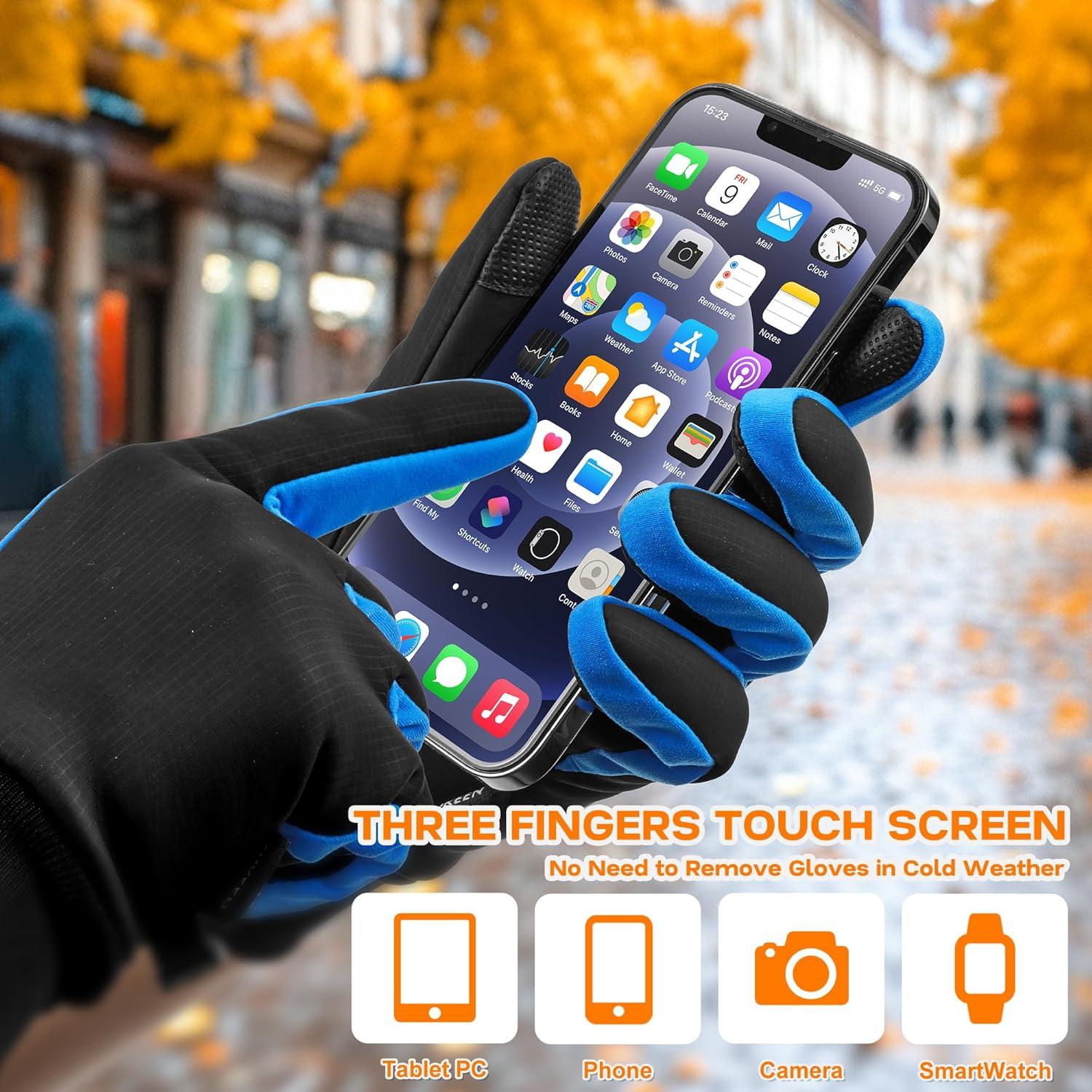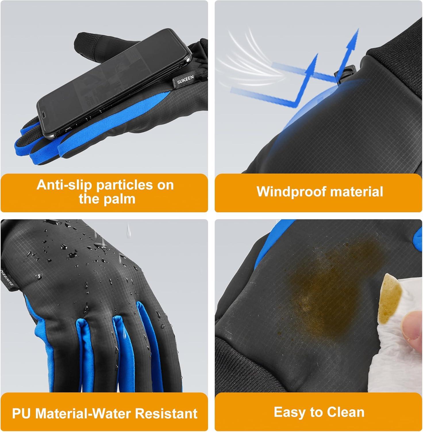 Sukeen Winter Gloves for Men Women, Waterproof Anti-Slip Touchscreen Warm Gloves for Runing Cycling Hiking Outdoor Recreation(Blue)