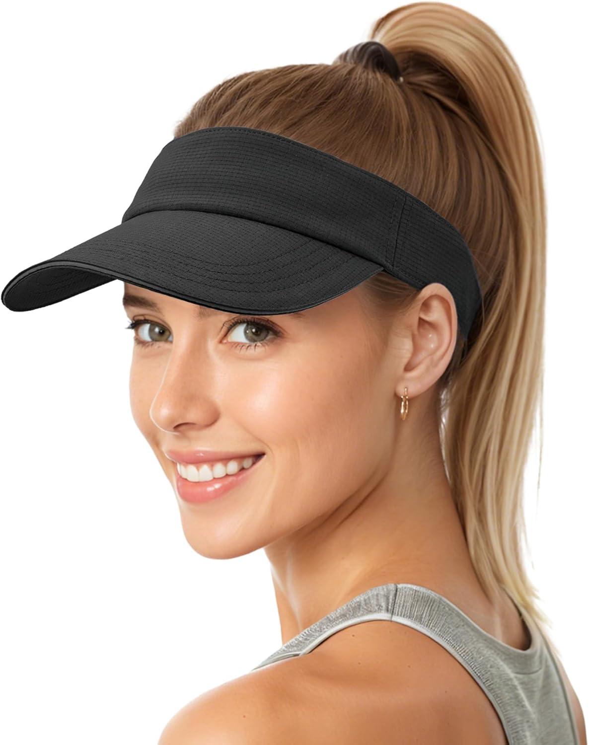 Sukeen Women's Adjustable Fit Runners Lightweight Comfort Performance Visor, Sports Sun Visor One Size Fits Most(Black)